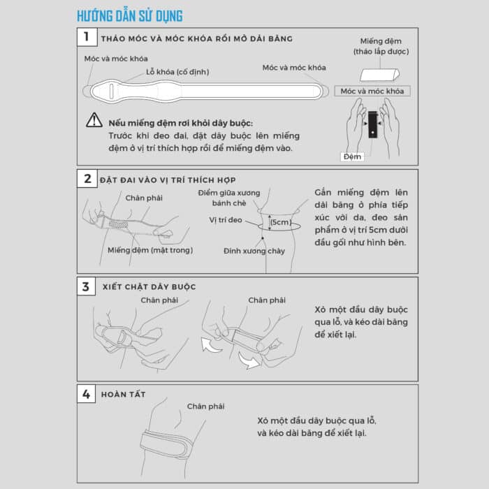 - Chiều rộng miếng đệm được thiết kế để giữ gân xương chày và giảm lực nén ở phía sau đầu gối nên đảm bảo độ chặt phía trước và thoải mái vận động phía sau.