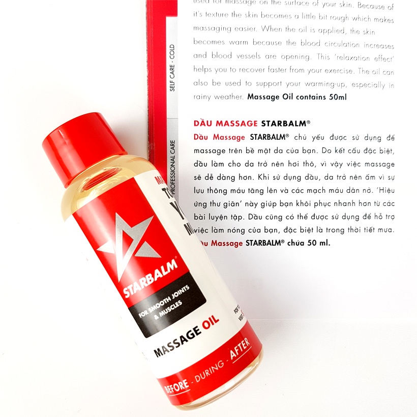 Starbalm Massage Oil là giải pháp tổng thể chăm sóc sức khỏe trước, trong và sau vận động. Dầu xoa bóp giúp các cơ có sự chuẩn bị tốt nhất để hoạt động hiệu quả hơn và giúp bạn khôi phục nhanh mệt mỏi, đau nhức cơ thể sau luyện tập.