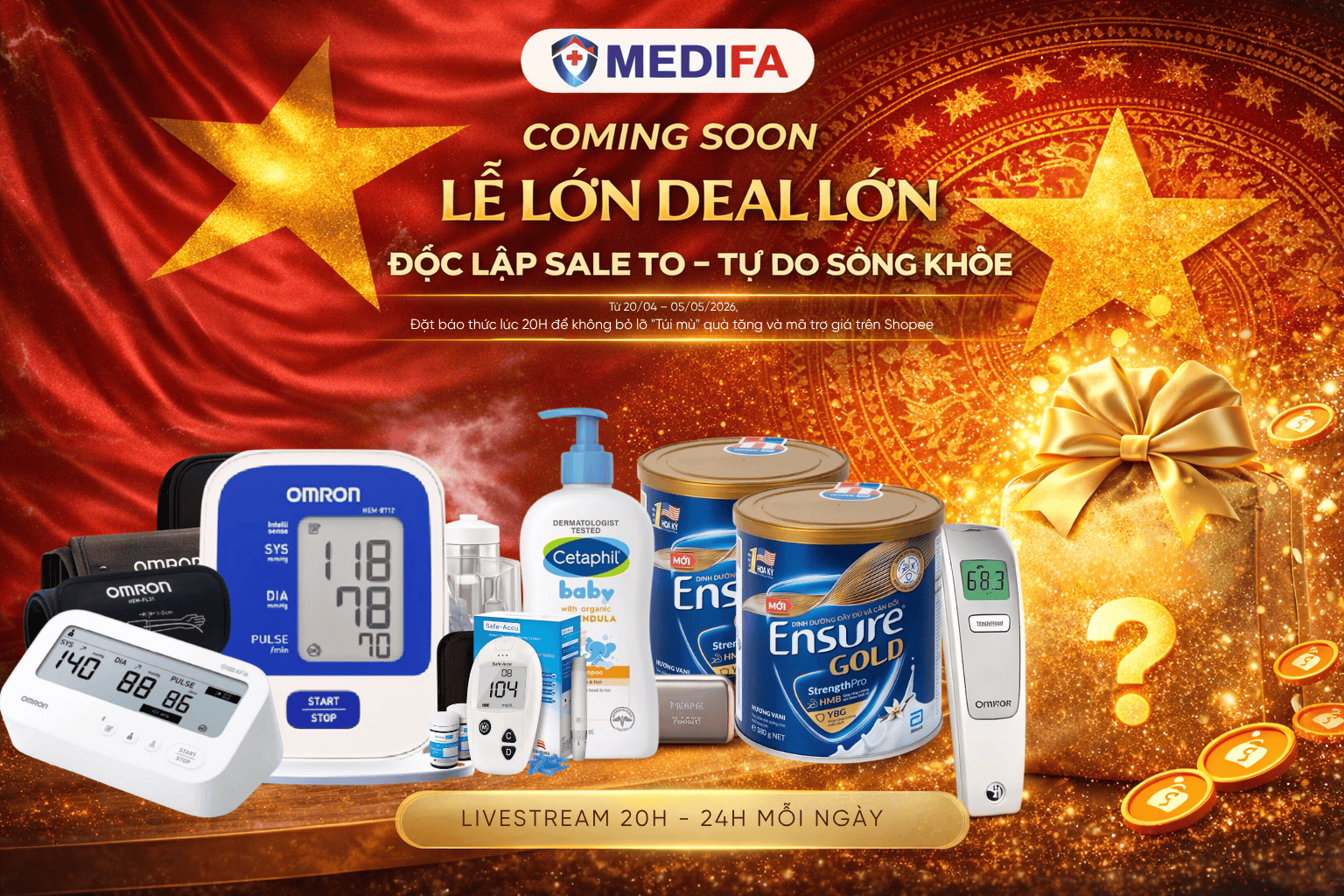 #MEDIFA #SaleDaiLe #30thang4 #ShopeeLive20H #GiaiPhongNoiLo #ThongNhatSucKhoe #ThietBiYTeChinhHang #SaleToToanSan #TuiMuQuaTang #ShopeeTroGia