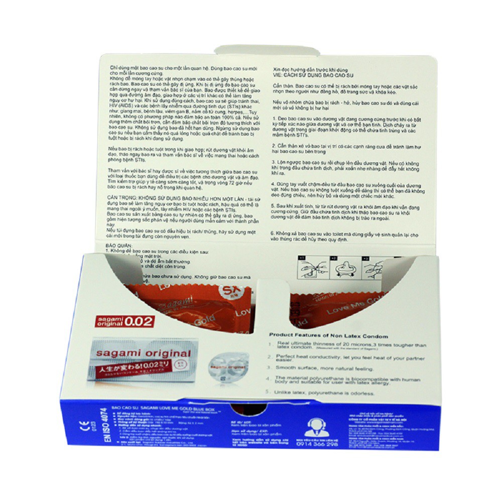 - An toàn: Sản phẩm được sản xuất theo dây truyền hiện đại, đáp ứng các tiêu chuẩn thế giới, cung cấp cho các thị trường khó tính nhất như Mỹ, EU …. Mang đến sự an toàn, tin tưởng cho người sử dụng. Ngoài ra 100% các sản phẩm Sagami Love Me Gold đều được sản xuất và nhập khẩu trực tiếp từ Nhật Bản.
