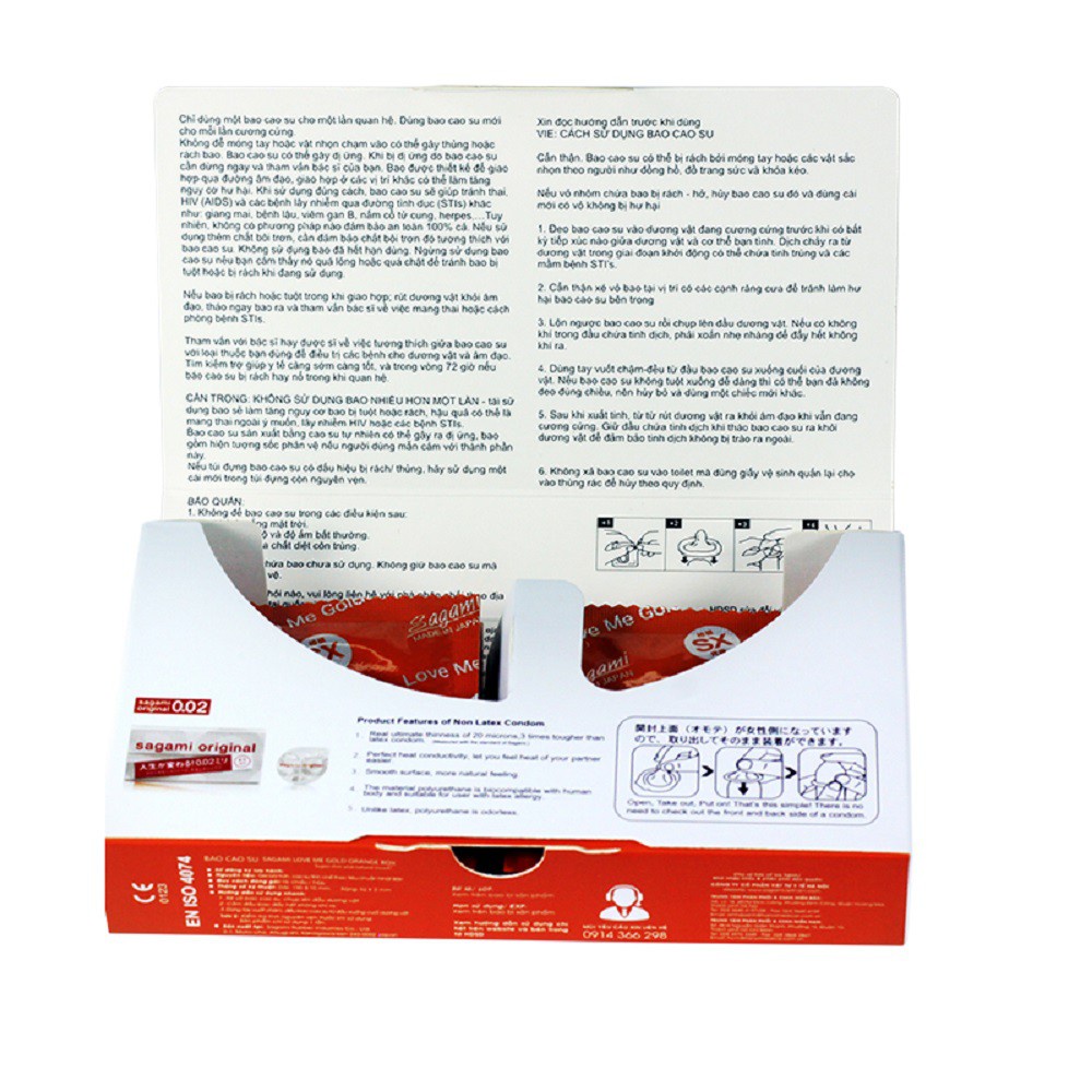 - An toàn: Sản phẩm được sản xuất theo dây truyền hiện đại, đáp ứng các tiêu chuẩn thế giới, cung cấp cho các thị trường khó tính nhất như Mỹ, EU …. Mang đến sự an toàn, tin tưởng cho người sử dụng. Ngoài ra 100% các sản phẩm Sagami Love Me Gold đều được sản xuất và nhập khẩu trực tiếp từ Nhật Bản.