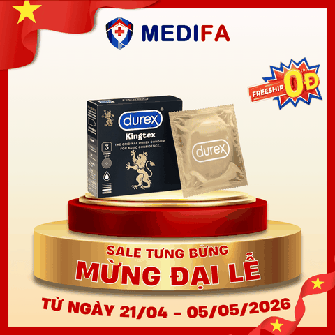 - Tên sản phẩm: Bao cao su Durex Kingtex 3S, nhiều gel bôi trơn - Hộp 03 bcs