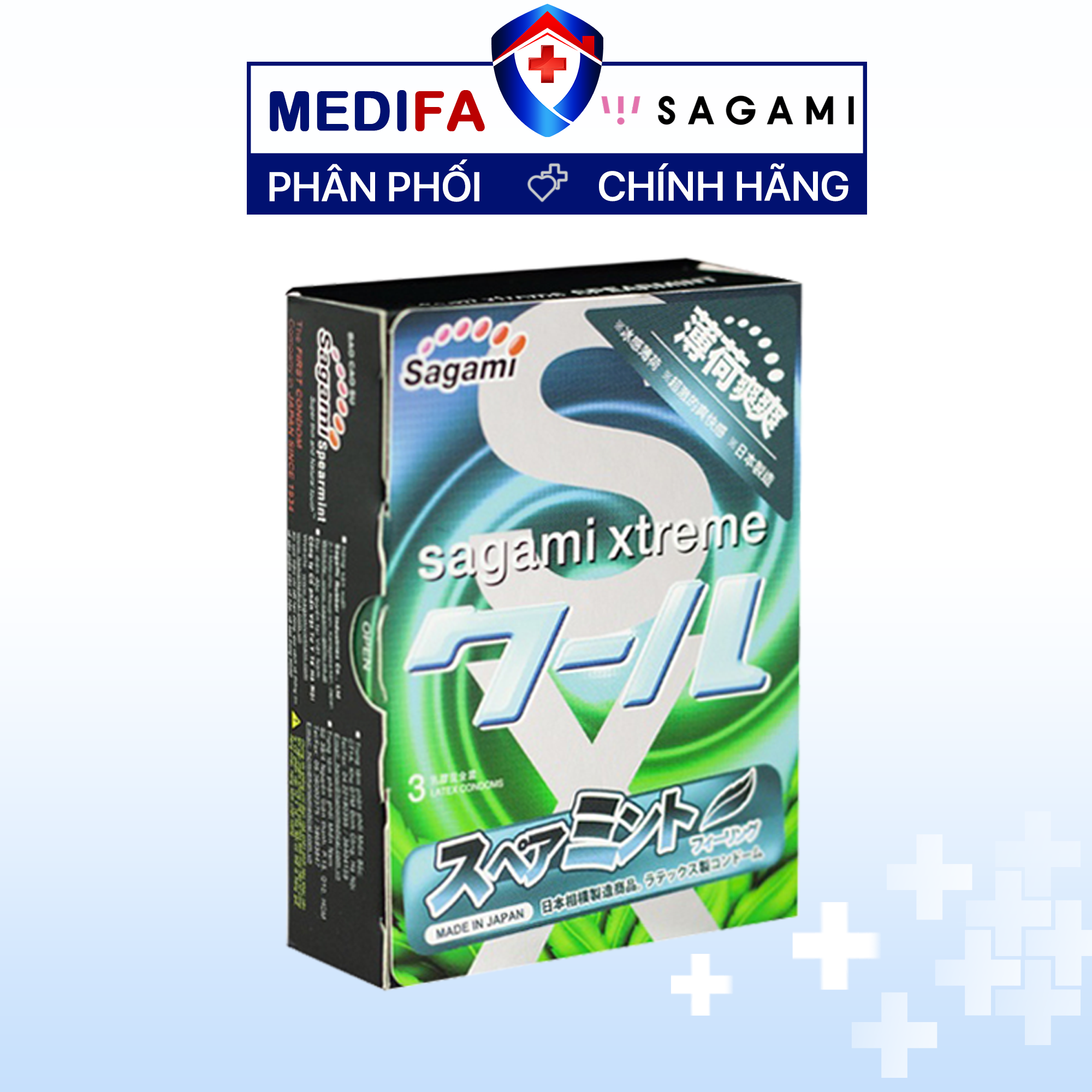 - Sagami Xtreme Spearmint là dòng bao cao su có hương thơm khi được bổ sung thêm tinh chất bạc hà trong chất bôi trơn tạo cảm giác tươi mát dễ chịu, làm tăng thêm sự hưng phấn và kích thích cho cả hai khi yêu.