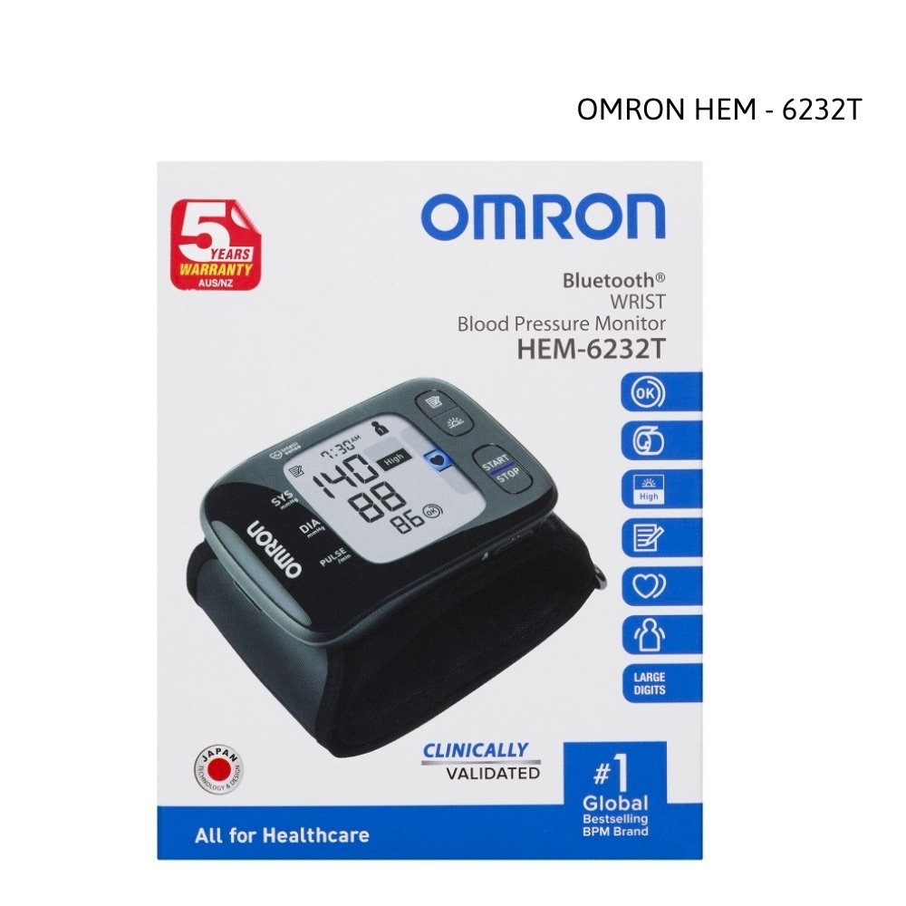 - Tên sản phẩm: Máy đo huyết áp điện tử cổ tay Omron HEM-6232T