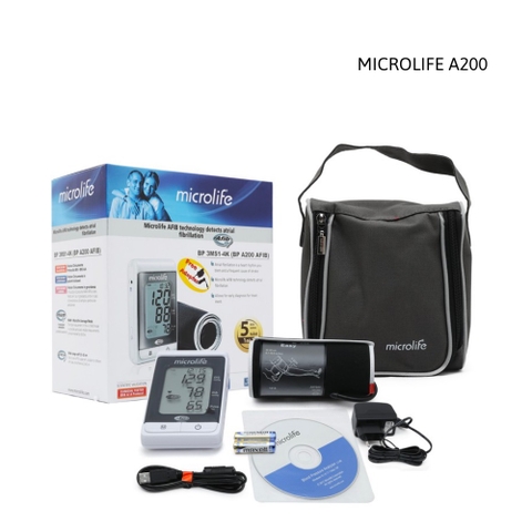 - Tên sản phẩm: Máy đo huyết áp điện tử bắp tay Microlife A200