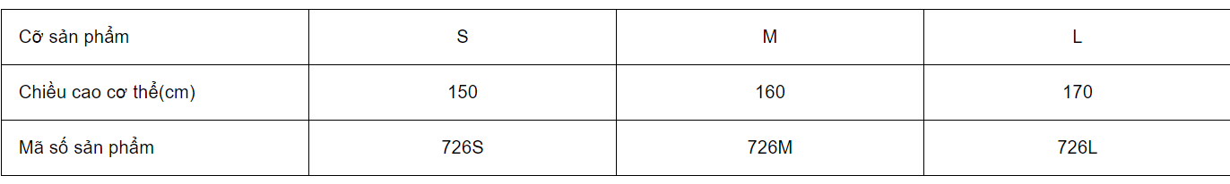 BẢNG SIZE, KÍCH CỠ SẢN PHẨM: