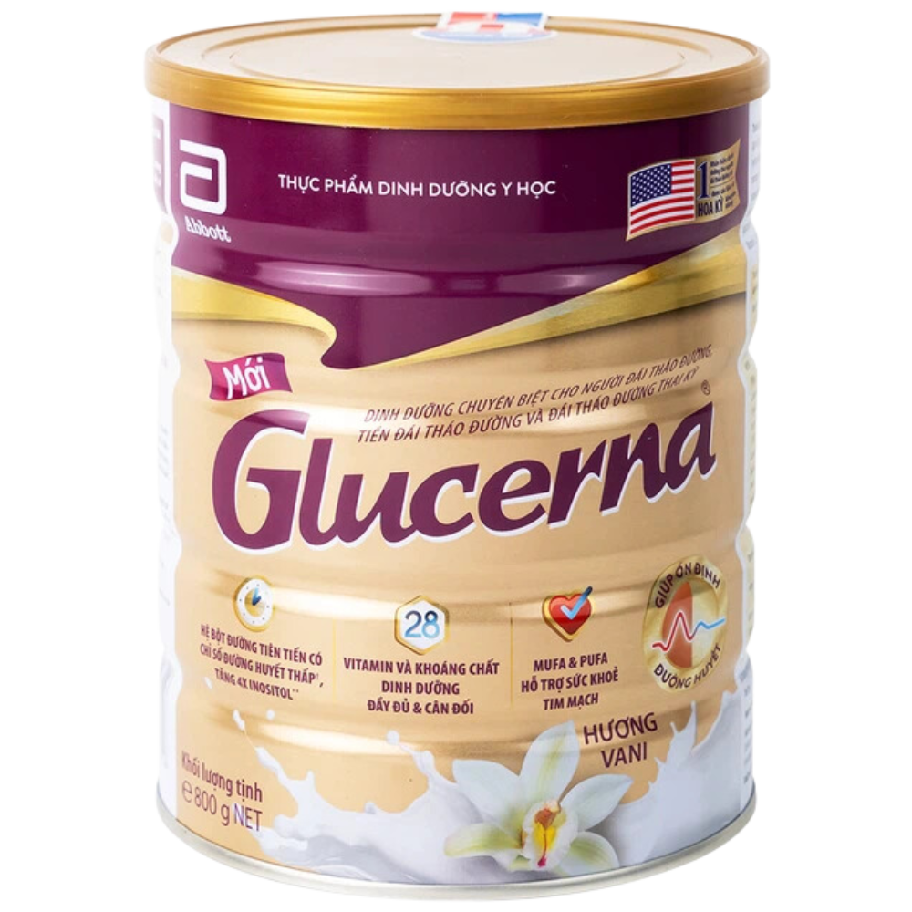- Với thành phần cân đối về đạm, bột đường, béo, 28 vitamin và khoáng chất, đặc biệt là crôm picolinat và taurin giúp kiểm soát tốt đường huyết. Glucerna có thể dùng bổ sung hoặc thay thế cho bữa ăn.